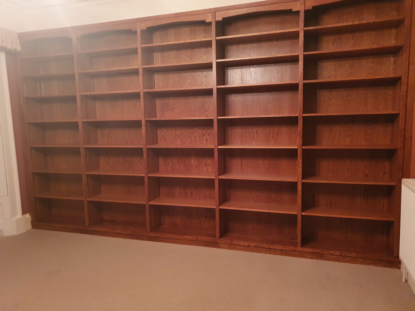 Bespoke solid oak bookcase stained to match existing furniture