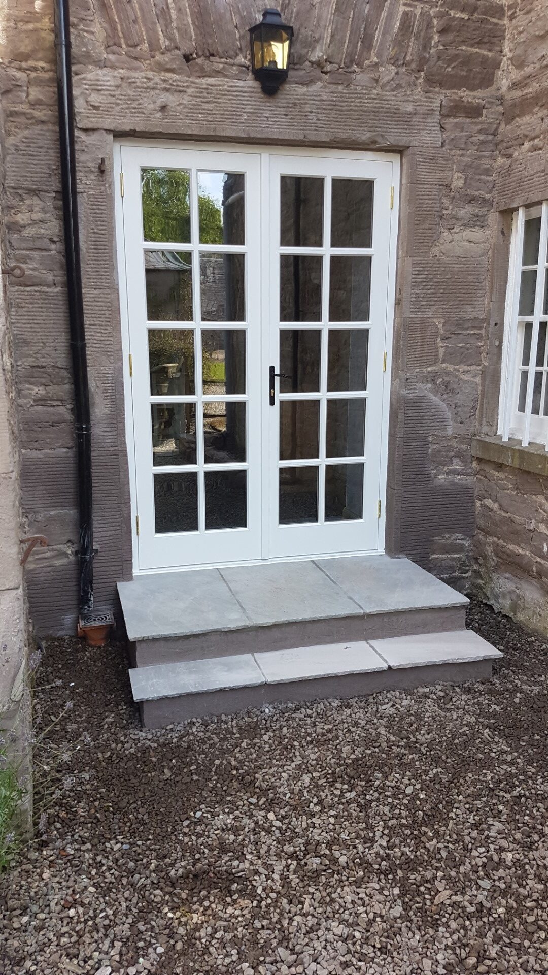 Existing window converted to French window with custom hardwood doors