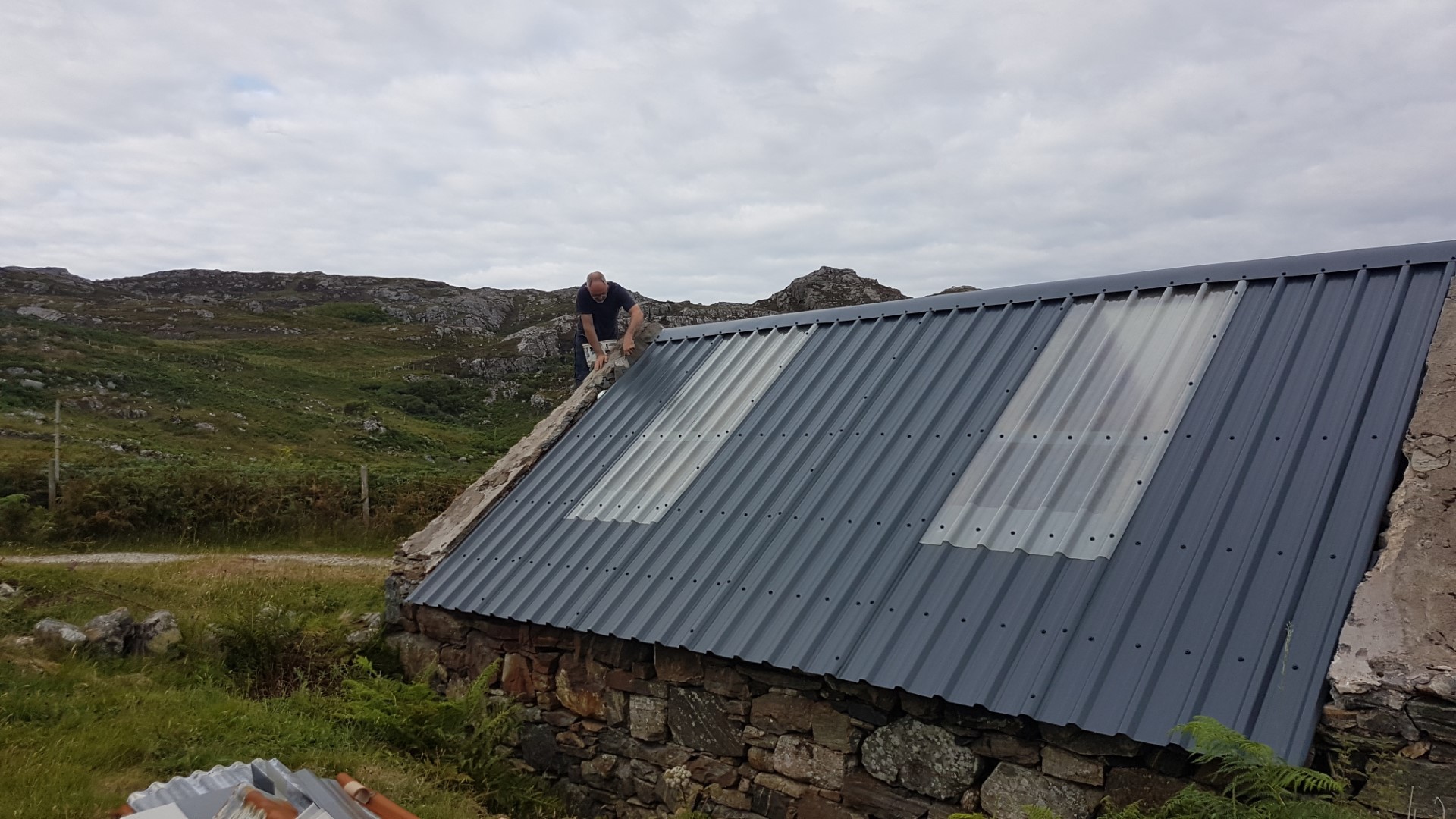 Jonathan Treffry replacing the roof on a bothy on the north west coast of Scotland